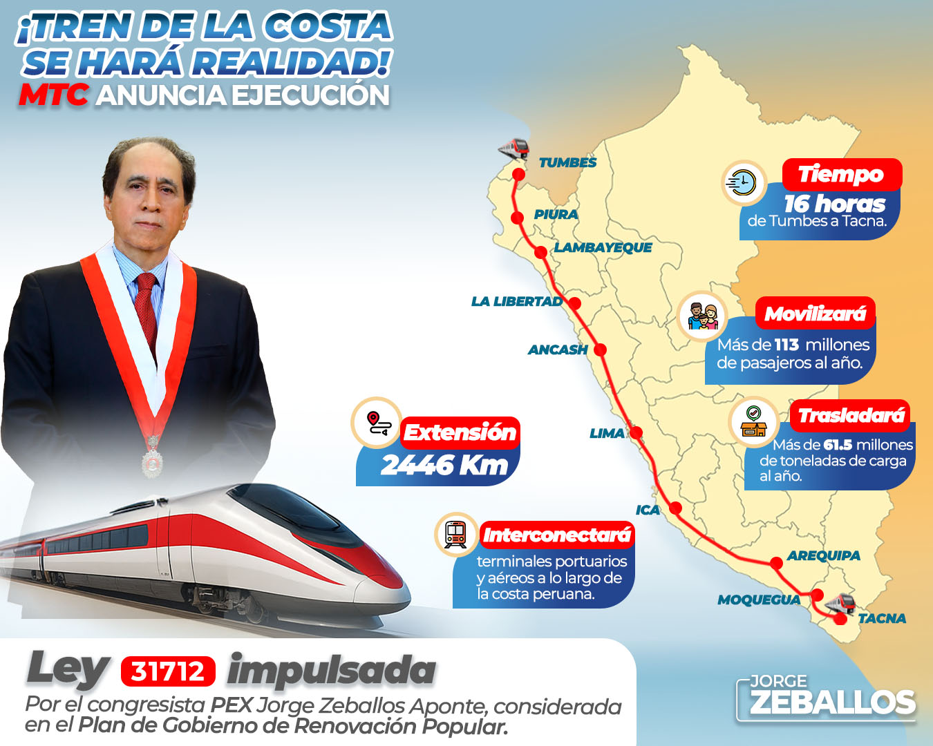 Esta ley atenderá las necesidades de transporte de carga y pasajeros a lo largo de la costa del Perú, uniendo más de 10 regiones. Entre sus principales beneficios están: